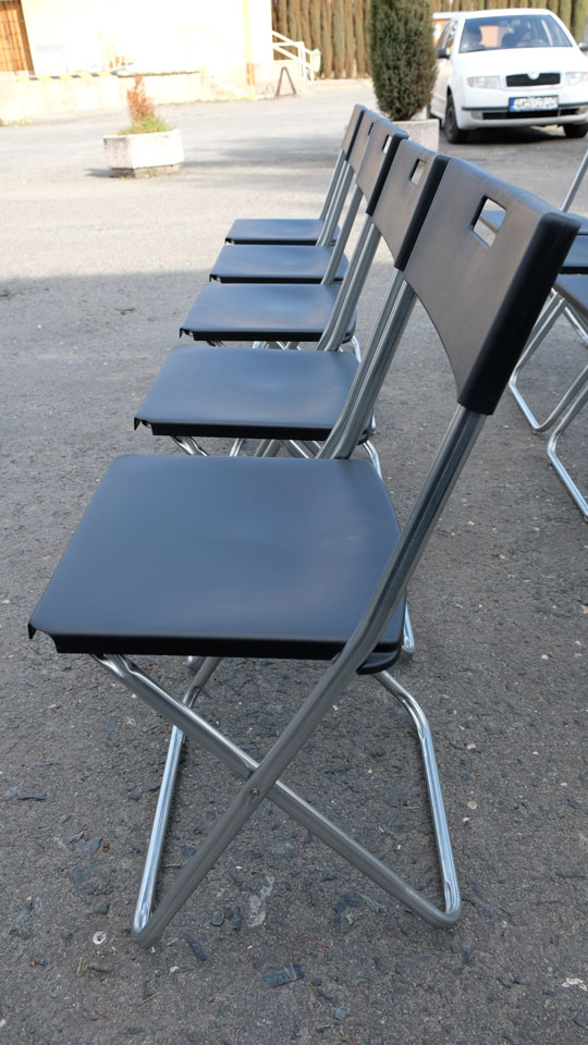 Disponujeme téměř 2000ks skládacích židlí, které můžete využít na jakýkoliv koncert, výstavu, konferenci, oslavu nebo jinou společenskou akci.
